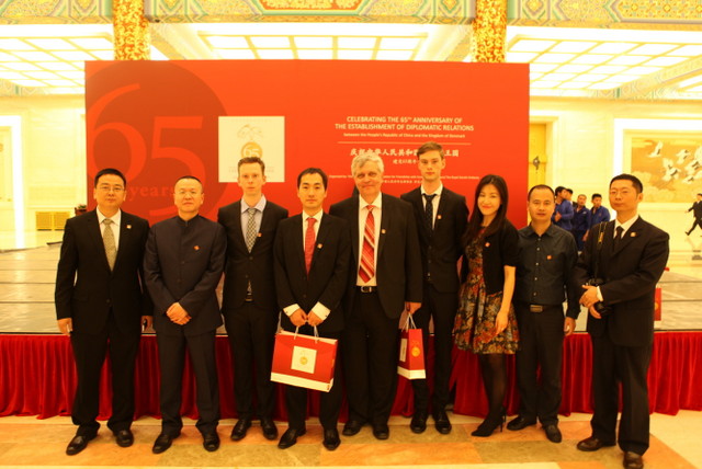 5月11日來(lái)自中國(guó)和丹麥兩國(guó)的代表在人民大會(huì)堂共同慶祝建立雙邊外交關(guān)系65周年。慶典活動(dòng)包括中國(guó)-丹麥農(nóng)業(yè)合作暨自然資源高效利用大會(huì)和慶祝晚宴。高農(nóng)生物園總經(jīng)理孫培良、招商部經(jīng)理秦光軍,都爾霍姆家族成員、總經(jīng)理肖珂等參加了活動(dòng)。