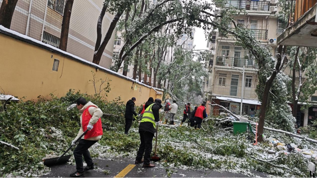 近期,武漢市迎來歷史罕見的暴雪天氣,給城市正常運(yùn)行和居民生活帶來嚴(yán)重影響。2月5日,高農(nóng)集團(tuán)主動對接下沉包保佛祖嶺街道金融港社區(qū),得知社區(qū)因垮塌、倒伏樹木堵塞小區(qū)出行主干道,造成居民出行不便,集團(tuán)人力資源部(黨辦)迅速集結(jié)本部及所屬企業(yè)單位黨員8名,緊急馳援對口社區(qū),協(xié)助社區(qū)工作人員合力清掃鵬翔小區(qū)路面積雪、斷裂樹枝,及時清除房屋、棚室上面的積雪和殘葉斷枝,減輕負(fù)重,防止出現(xiàn)變形、倒塌和冰錐墜落傷人。在多方齊心協(xié)力之下,累計清掃斷裂樹枝160余根,鵬翔小區(qū)主干道路已全面清掃疏通,居民出行道路現(xiàn)已恢復(fù)暢通,基本恢復(fù)小區(qū)居民正常生活秩序。高農(nóng)集團(tuán)黨員以雪為令、迎雪而上,主動投身戰(zhàn)風(fēng)雪、保民生一線,在本次應(yīng)對低溫雨雪冰凍天氣中充分發(fā)揮了基層黨組織戰(zhàn)斗堡壘和黨員先鋒模范作用,獲得社區(qū)工作人員和轄區(qū)居民的高度認(rèn)可。